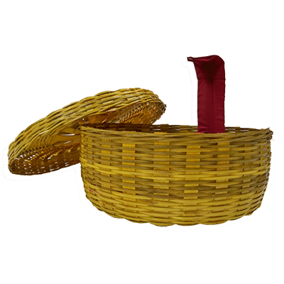 The magician borrows a tie from a member of the audience. The tie is placed into a wicker basket. The magician casts a sell upon the tie… then, slowly and magically the tie starts to rise out of the basket like a snake under the spell of a snake charmer. (The cobra tie can even reveal a card selection.) The tie then lowers itself back into the basket and is then given back to the audience member. The mechanical gimmick inside basket makes his effect is very easy to perform.
