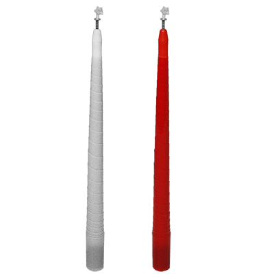 Magician presents a lit white candle; he blows it out and covers it with a silk and amazingly it completely changes color from white to red. Then just as magically the magician makes it vanish!