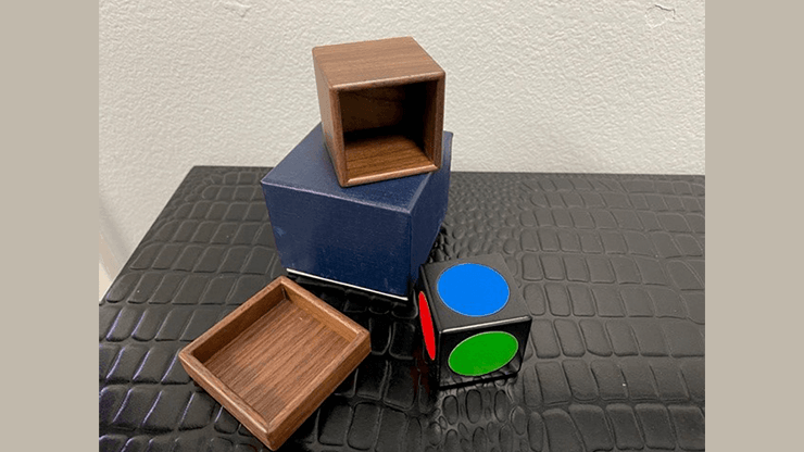 Mikame has manufactured a piece of art you’ll be glad you have. Show an exotic wood box and lid, also a cube with 6 different colored circles screened on all 6 sides. Ask spectator to put a favorite color on the cube facing up and put the lid on the box. You name their chosen color without actually opening the box!