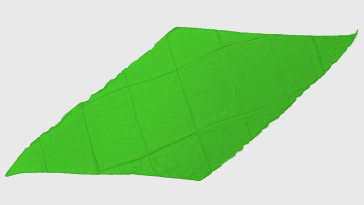 This diamond shaped silk is perfect for all your silk effect needs. Cut to appear as long as a full-sized square silk but uses less material so it packs small. 100% silk.