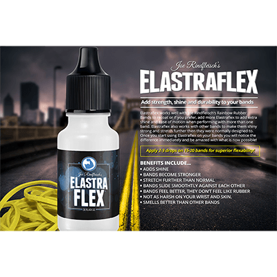 Elastraflex works well with Joe Rindfleisch’s Rainbow Rubber Bands to recoat or if you prefer, add more Elastraflex to add extra shine and ease of motion when performing with more than one band. Elastraflex also works with other bands to make them shiny strong and stretch further then they were normally designed to. Once you start using Elastraflex on your bands you will notice the difference immediately and be amazed with what is now possible!