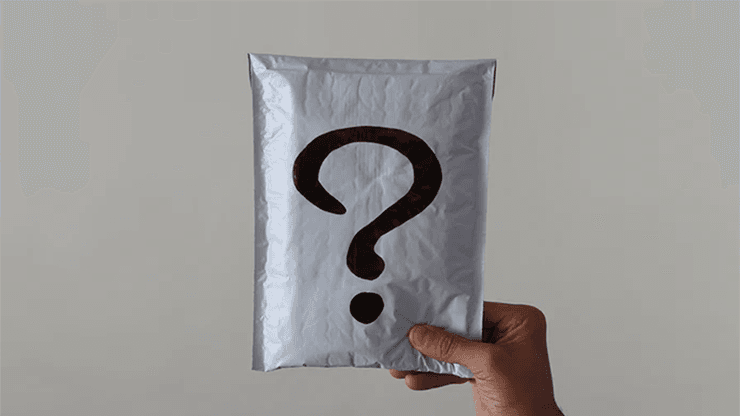 Outer question mark white envelope measures 6.5″ x 9″. Final reveal card when unfolded is 5″ x 7″.