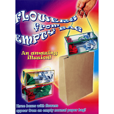 The magician shows his audience an empty paper bag and invites a spectator to put his hand inside to confirm that there is nothing in it. Immediately, the magician puts his hand in the bag, and makes a beautiful box with two flowers appear. After a moments surprise, he puts his hand in the bag again, and makes another box appear. Finally a third box with flowers inside magically appears from the empty bag… the audience will remain speechless!