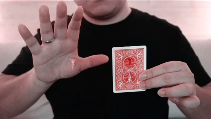 The angel image on the back of a playing card disappears slowly, and reappears outside the playing card then slowly floats back to the playing card from which it came.