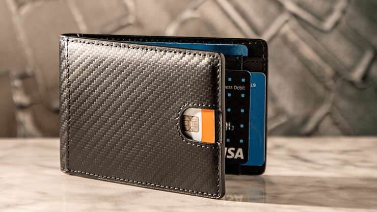 Behind its sleek carbon fiber textured exterior lies a simple yet effective loading mechanism. The FPS Wallet isn’t just a magic wallet. It is designed to be your actual wallet, with room for your ID, credit cards, and cash. It also has RFID-blocking material that stops unwanted wireless scans to protect your credit card information.