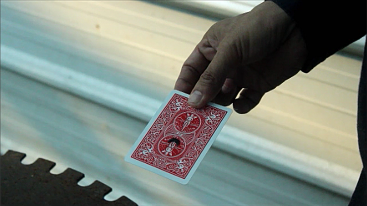 The spectator selects a card and you draw a circle on their card. Then, seemingly the ink jumps and changes into a half moon image.
