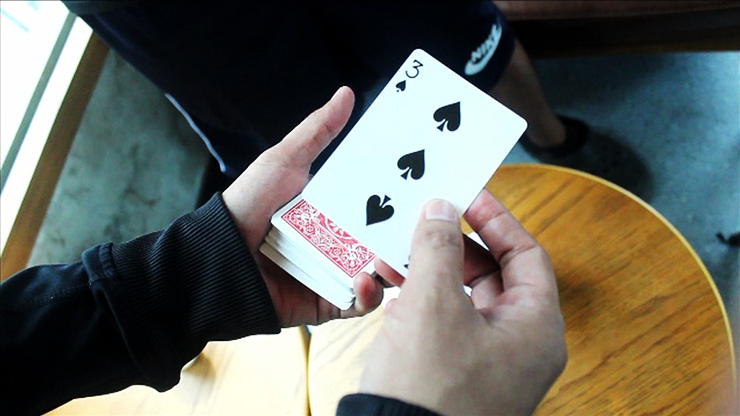 The spectator selects a card and it’s lost in the pack. The magician drops the deck and their card visually appears on top! HALLUCINATION is now ready to learn.
