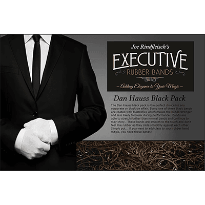 The Dan Hauss Black Pack is the perfect choice for any corporate or black tie affair. Every one of these black bands are coated with Elastraflex which makes the bands stronger and less likely to break during performance. Bands are able to stretch further than normal bands and continue to stay shiny. These bands are smooth to the touch and don’t feel like rubber as they slide smoothly against each other. Simply put… if you want to add class to your rubber band magic, you need these bands!