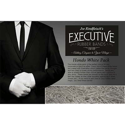 The Hondo White Pack is the perfect choice for any corporate or black tie affair. Every one of these white bands are coated with Elastraflex which makes the bands stronger and less likely to break during performance. Bands are able to stretch further than normal bands and continue to stay shiny. These bands are smooth to the touch and don’t feel like rubber as they slide smoothly against each other. Simply put… if you want to add class to your rubber band magic, you need these bands!