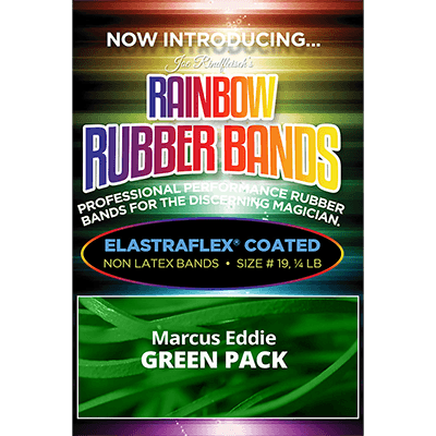 Named after Marcus Eddie these amazing green rubber bands are the very best for performing and showcasing your magic. Each band is coated with Elastraflex which makes the bands stronger and less likely to break during performance. Bands are able to stretch further than normal bands and continue to stay shiny. These bands are smooth to the touch and don’t feel like rubber as they slide smoothly against each. Simply put…… if you do rubber band magic, you need these bands!