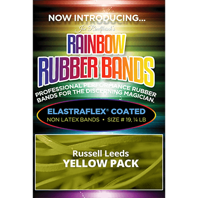 Named after Russell Leeds these amazing yellow rubber bands are the very best for performing and showcasing your magic. Each band is coated with Elastraflex which makes the bands stronger and less likely to break during performance. Bands are able to stretch further than normal bands and continue to stay shiny. These bands are smooth to the touch and don’t feel like rubber as they slide smoothly against each. Simply put…… if you do rubber band magic, you need these bands!