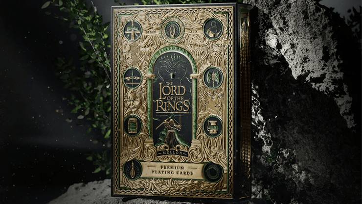 Crafted with the gold that Sauron used to forge the One Ring, along with emerald green foil that reflects the luscious landscape of The Shire, the box is truly one of a kind. The cards themselves are made in the USA – printed on FSC-certified paper derived from sustainable forests, using vegetable-based inks and starch-based laminates.