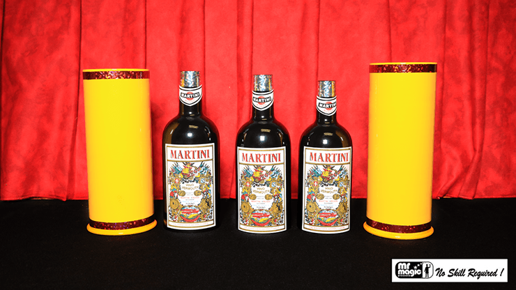 Using metal tubes, turn a bottle into a glass and a glass into a bottle. This is magical and funny! Repeat the changing sequence as many times as you’d like during your routine.