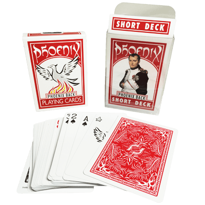These decks have a multitude of uses; in fact a chapter in The Encyclopedia of Card Tricks has been designated to The Short Card. Insert a regular Poker Size card into a short deck and you immediately have a deck with a long key card or place a short card in a regular deck and you have a short key card. If you combine a Short Deck with a Regular Phoenix Poker Deck, you now have two Mene-Tekel Decks that are “Long and Short”. These are the same cards that we use to produce our “Casino Quality” Phoenix Svengali Decks.