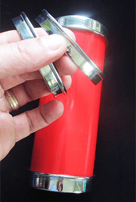 The tube is picked up from the table and can be held up to the light so that the audience can clearly see that it’s completely empty. The tube is now held in the palm of the hand and the spectator is requested to make drum-heads by placing a thin tissue over each end and two metal rings to secure them. The paper drum heads are immediately broken and loads of silks and ribbons are now produced from the once empty tube.