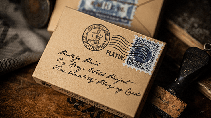 The first version of the Postage Paid deck came out as a subscription deck back in 2020. This is the newest edition featuring a different colored back design, new fictitious addresses on each card submitted to us by customers, a new seal, and stamps.
