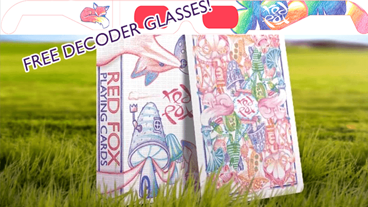 Any red reader glasses will work, glasses included while supplies last. The never-before-done marking system uses these glasses to help train your eye where to look and how to see the markings. Once trained, the glasses are no longer needed to see the markings. Custom-designed, 100% hand-drawn playing cards.