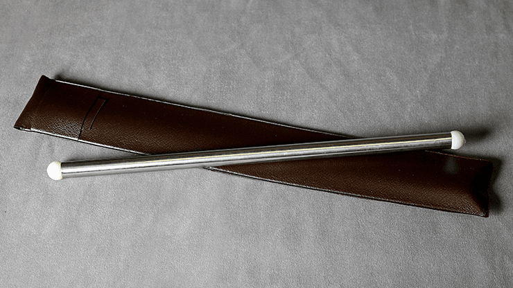 The rod is designed to last a lifetime, the ‘knobs’ have been specially made to work smoothly and flat elastic has been used because it gives better results than the round elastic normally used. Most models usually have only one ‘operative’ end, which meant the performer had to keep track of it. With this rod though you can use either end and thisadds to the effect when repeating a ‘rise’, the rod is turned over and the other end is taken in hand. There are four phases. The rise from a handkerchief, the rise from the bag supplied, horizontal movements left and right from the same bag, and finally shooting out of the bag high into the air.