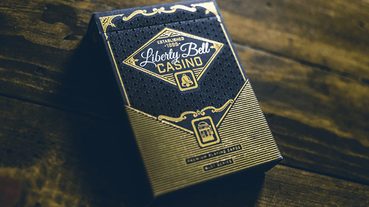 The Liberty Bell Casino Deck is a premium Casino-style Deck that’s inspired by the original Slot Machine symbols. The Liberty Bell icon is subtlety highlighted throughout the design.