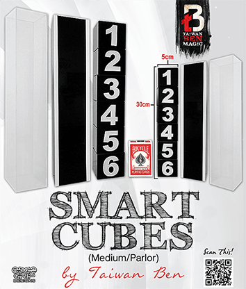 In one of the columns, the number sequence is from top to bottom, in the second column of cubes exactly the opposite. You cover one of the columns and instantly the cubes match the other column. The audience can see both columns of cubes in exactly the same number sequence.