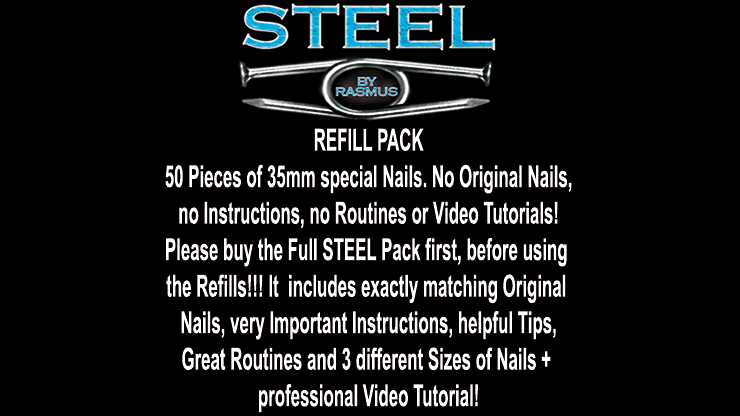 Please buy the full STEEL pack first, before using the refills!!! It includes exactly matching original nails, very important instructions, helpful tips, great routines and 3 different sizes of nails. It also has a professional video tutorial plus a nice, strong carrying box.