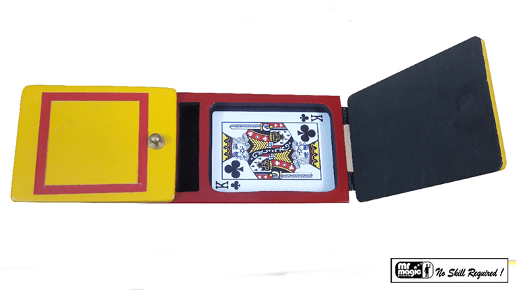 Show a wooden frame having two doors. Place a card in the left door, and state that you will make the card disappear. Tilt the box slightly to the right, and the audience can hear the card sliding over to the other side. Open the left door and the card is gone. The audience cries out for you to open the right door. Show them they’re right – you cheated! The card is on the right side.