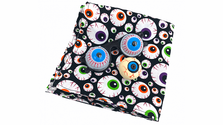 A handkerchief is shown made of “eyeball” print. Suddenly and eyeball is plucked right from the fabric! Then the corners are drawn up into a small bag and a pair of googly eye glasses are pulled from inside!